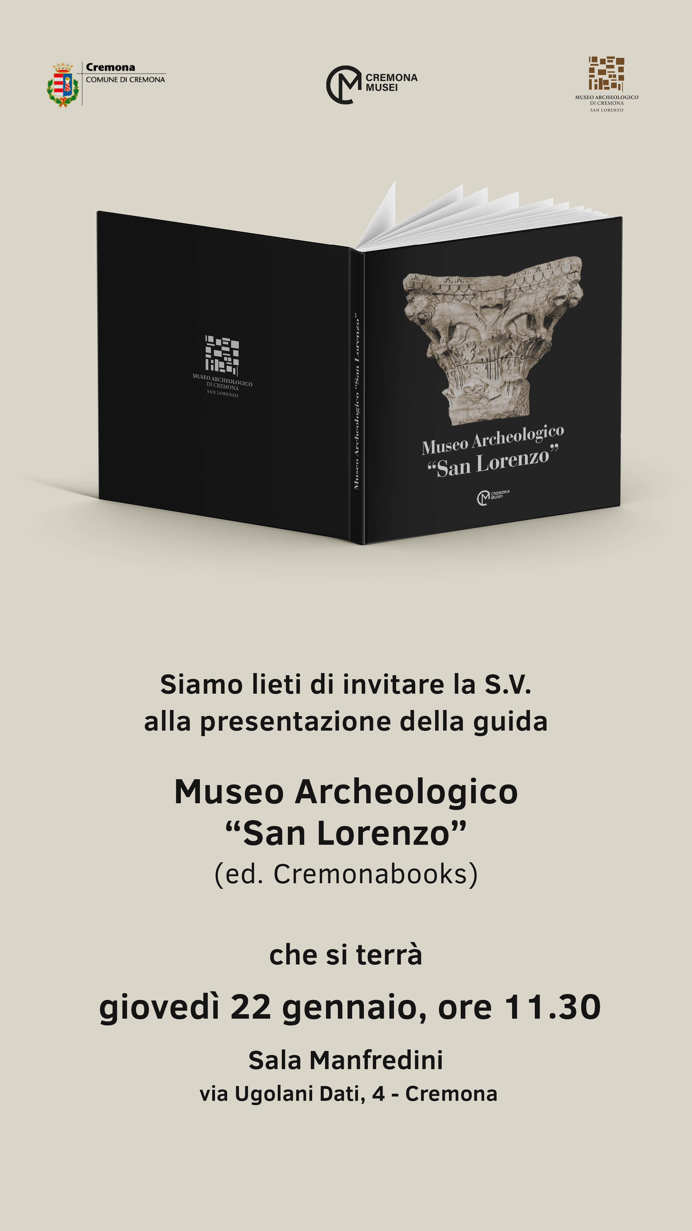 Giovedì 22 gennaio verrà presentata al pubblico la nuova guida al Museo Archeologico San Lorenzo, edita da Cremonabooks.